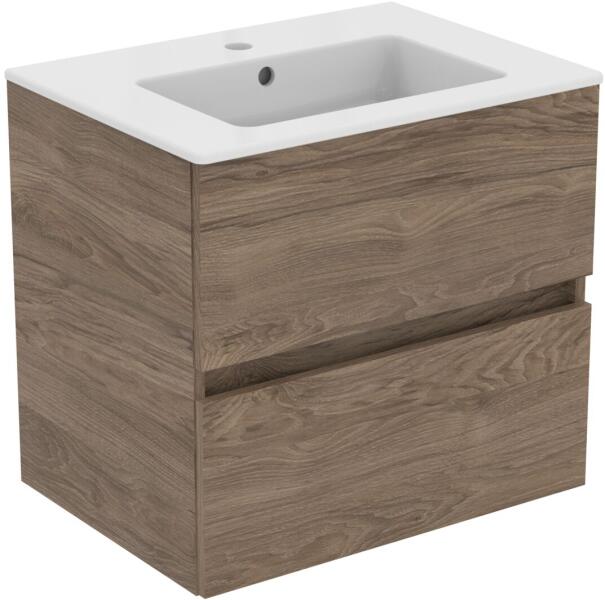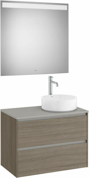 Mosdószekrény tükörrel, jobboldali ráültethető mosdóhoz|Méret: 794 x 457 x 583 mm|Szín: sötét szilfa|2 fiókos|Tükör mérete: 800 x 800 x 22 mm|Beépített led világítással|Az ár a mosdót nem tartalmazza, külön szükséges megrendelni!