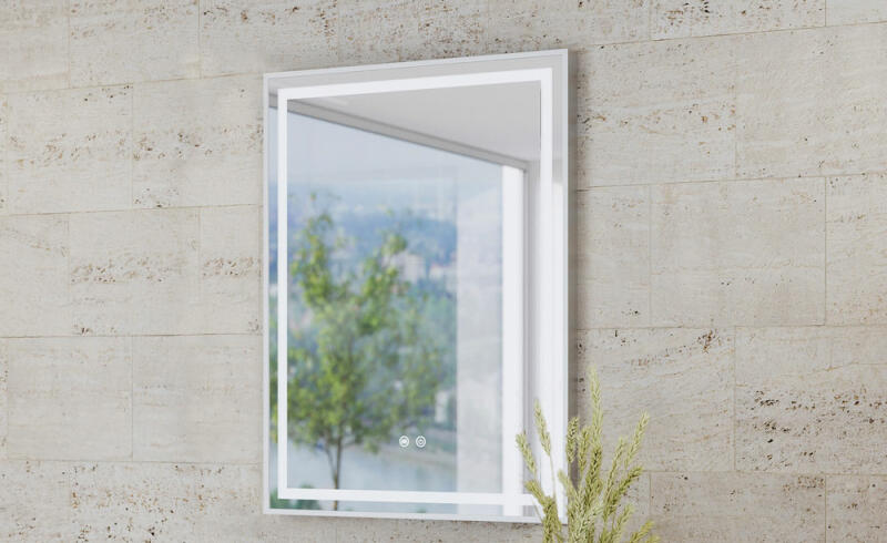 Körben integrált LED világítással | Páramentesítővel | Érintőkapcsolóval | Fém keretbe épített | Lumen: 550-570lm/m | Teljesítmény: 7,2W/m, 4000K | Méret: 60x80x3,5 cm|Fürdőszoba tükör gyártója: T-Boss