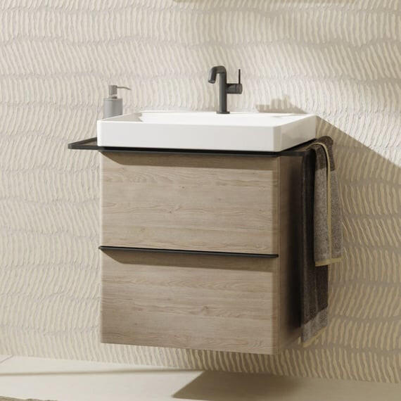 Hansgrohe Xelu Q Mosdószekrény mosdóhoz 580/475 két fiókkal, matt fekete fogantyú/természetes tölgy 54025670 iF product design award 2023: a világ legjobb formatervezéseivel büszkélkedhetnek. Nemzetközileg elismert minőségi pecsét, amelyet 1953 óta ítél oda az International Forum Design. Garancia: 5 év Telepítés: falra Alkalmazás: Xelu Q mosdóhoz Anyaga: közepes sűrűség