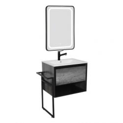 Sanotechnik SOHO 60 fürdőszobabútor szett. Az ár tartalmazza: Függesztett alsóbútor 1 fiókkal, polccal. 60x48x46cm Öntött Márvány Mosdó. 60x46x15,5cm Tükör indirekt (LED) megvilágítással, érintőkapcsolóval. 60x80cm Törölközőtartó. 65x43x10cm