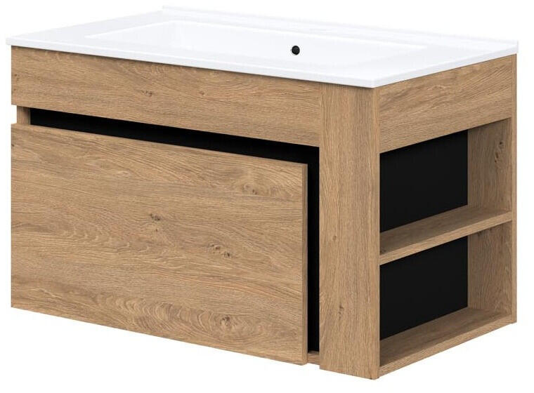 Mosdószekrény középre ráültethető mosdóhoz|Méret: 794 x 457 x 583 mm|Szín: világos tölgy|2 fiókos|Az ár a mosdót nem tartalmazza, külön szükséges megrendelni!
