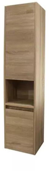 A Rimini függőleges fali fürdőszoba szekrény 30x150x35 cm méreteivel és modern stílusával tökéletes kiegészítője lehet fürdőszobádnak. A platina tölgy szín elegáns és időtálló megjelenést kölcsönöz a helyiségnek. Ez a praktikus fürdőszoba szekrény rendkívül helytakarékos megoldást kínál, hiszen falra szerelhető. A kompakt mérete ( 30 cm szélesség, 35 cm m
