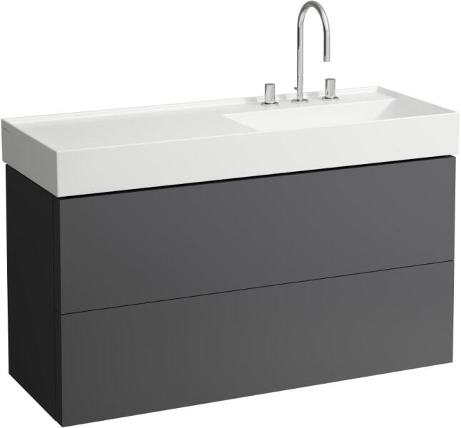 Laufen Base matt antracitszürke alsószekrény 117,8x39,1x51,5 cm négy fiókkal H4025341102661 Laufe Val H814282 mosdó variációihoz Telepítés: fali, lábbal kiegészíthető Súly: 43,5 kg Alapanyag: MDF Felület: PVC fólia és ABS élek Szín: matt antracitszürke Méret : 117,85x39,1x51,5 cm Kivitel: négy fiókkal (teljesen kihúzható) Fékezett záródással (soft-close mechanizmus) I