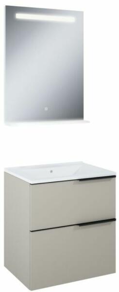 Venezia Luna 60 cm széles fürdőszoba alsószekrény és mosdókagyló szett polcos tükörrel. Praktikus lenyitható ajtó lebillenés gátlóval és push-to-open nyitó szerkezettel. Az ajtó felső sarkányak megnyomásával a a billenőajtó nyitható. 16 mm vastag bútorlapok, az élek ABS élfóliával vannak lezárva, ami egyszerre esztétikus és véd a beázás ellen. Minden Furnitech/V