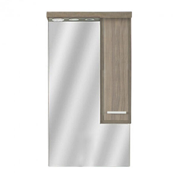 Nerva 55 cm-es tükrös felsőszekrény, Rauna szil Termékleírás A Nerva 55 cm-es tükrös felsőszekrény egyedivé varázsolja az Ön fürdőszobájátis ! A tükrös szekrény kevés helyet foglal viszont rendelkezik egy tárolós résszel ahol kényelmesen elférnek afürdőszobai pipere eszközök. Kevés helyigénye miatt kisebb fürdőszobák berendezésére is alkalmas, például panel