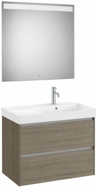 Méret: 800 x 460 x 505 mm 2 fiókos A327688000 mosdóval jobboldali medencével Tükör mérete: 800 x 800 x 22 mm Beépített led világítással