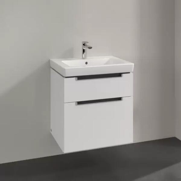 Subway 2.0 Alsószekrény 587x590x454mm Glossy White 1 x doboz kiegészítőkhöz L, 2 x kihúzható elem, mosdó középen, falra szerelhető, SzögletesA mosdót nem tartalmazza, azt külön kell megrendelni!