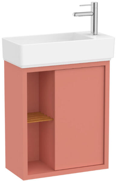 Roca Tura ajtós alsószekrény polcokkal 55x27,5x60 cm kerámia mosdóval, világos terrakotta A852022560 Alsószekrény tulajdonságai: Gar ancia: 2 év Telepítés: falra Anyag: MDF Magasság: 600 mm Magasság mosdóval: 725 mm Szélesség: 503 mm Szélesség mosdóval: 550 mm Mélység: 275 mm Polc szélesség: 167 mm Kivitel: 1 ajtó & 2 polc Ajtó nyitás: push-open Lágy záródás Szí