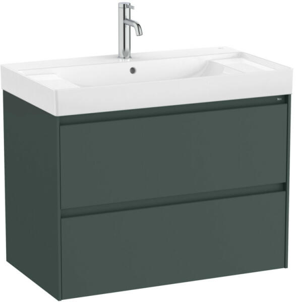 Unik mosdó+mosdószekrény középső medencével|Méret: 800 x 460 x 645 mm|Szín: matt zöld|Falra szerelhető|2 Fiókos (soft close)|1 csaplyuk középen
