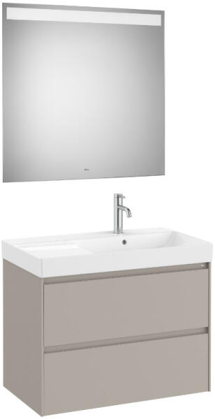 Roca Ona fali fürdőszobai bútor szett jobbos mosdóval 80x46x64,5 tükörrel, homokszürke A851706510 Ona termékcsalád egyszerű, mint a természet. Funkcionális anélkül, hogy hidegnek tűnne, tiszta esztétikája, amely követi a természeti környezet eredendő melegét. Azoknak készült, akik élvezik a csendes tájak erejét. Alsószekrény tulajdonságai: Gar ancia: 2 év Telepítés