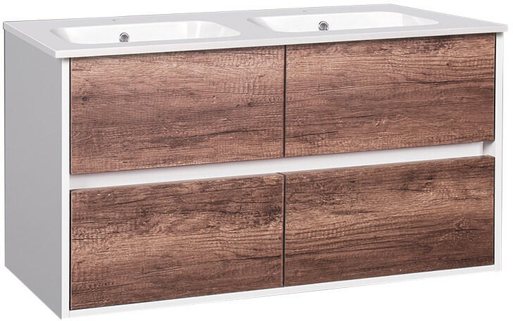 Termékjellemzők: - 4 fiókos mosdószekrény - 15 mm vastag MDF korpusz magasfényű lakkozott fehér felülettel - 18 mm vastag MDF front melamin dió dekor felülettel - soft close fiókrendszerrel (mosdókagyló és csaptelep nélkül) Lapra szerelve szállítjuk. Mérete (szélesség × mélység × magasság): 119 × 45 × 55 cm