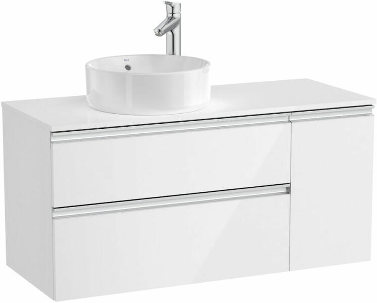 Méretek: 1100 x 460 x 537 mm 2 fiókkal és 1 ajtóval baloldali mosdóhoz Mosdót külön kell rendelni hozzá Fényes fehér színben