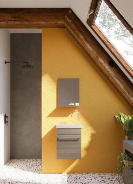 Perla 40cm-es egy ajtós fürdőszobaszekrény füstölt tölgy + mosdó Perla 40cm-es egy ajtós fürdőszobaszekrény füstölt tölgy + mosdó Falra rögzíthető, laminált bútorlap fürdőszobabútor, négy színben kapható. További eleganciát nyújtva a korlátozott hellyel rendelkező fürdőszobáknak. A készlet laminált bútorlap tükrös polcelemet és kerámia mosdót tartalmaz. A