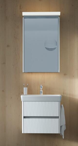 Az Aira fürdőszobabútor sorozat lehetővé teszi a felső és alsó szekrények különböző változatokba való kombinálását. Lehetővé teszi komplex kombinációk létrehozását nagy fürdőszobákban, valamint minimalista megoldást modern dizájnban. A fiókok, ajtók nyitását a push-open rendszer, azaz kilincs nélküli nyitás oldja meg. A fiókok lassan záródó vasalatokkal van