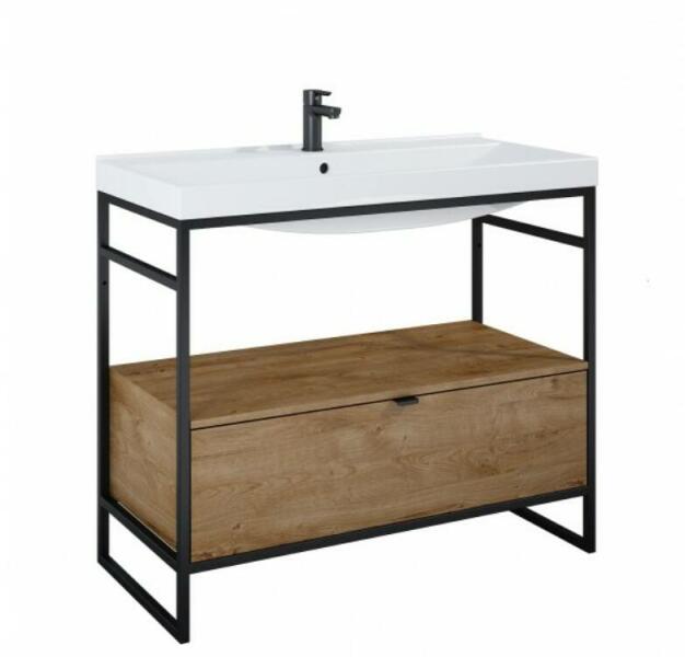 Tulajdonságok:- összeszerelt termék- szín: kiváló minőségű, fa hatású/tapintású melamin felület Canela tölgy színben- anyaga: 16 mm vastagságú bútorlap- bútor élei magas minőségű élzáróval védettek, mely ellenáll a nedvességnek- teljesen kihúzható soft close fiók- fekete, matt felületű festett acél keret