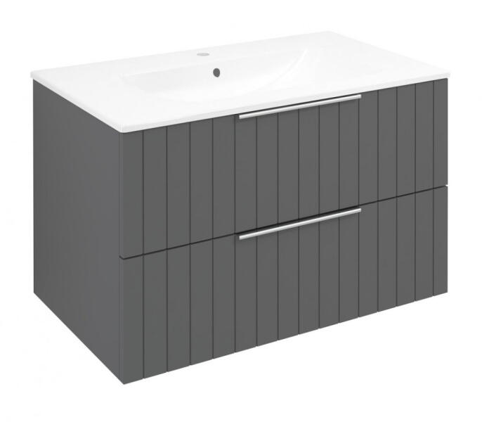 Sapho Cirasa mosdótartó szekrény 2 fiókkal 79,8x52x46 cm, carina strip CR801-4141S Garancia: 24 hónap Jótállás: 2 év Súly: 24 kg Anyag: MDF/laminált Telepítés: fali 2 fiókkal Kivitel: halk lágy záródás Méret: 79,8x52x46 cm Szélesség: 798 mm Mélység: 460 mm Magasság: 520 mm Szín: antracit A mosdó nem tartozék, külön rendelhető. Más típusú fogantyúk is rendelhetőek