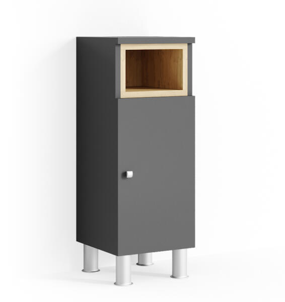 Az Aquis szekrény elegáns és praktikus bútordarab minden fürdőszobába, mely maximális kényelmet nyújt a mindennapi használat során. Minimalista megjelenésű és jól kombinálható más bútorokkal. Ajtaja és nyitott polca elegendő tárolóhelyet kínál minden igényének kielégítésére. A két belső rekesz még nagyobb rendezettséget és rendet biztosít fürdőszobájában.