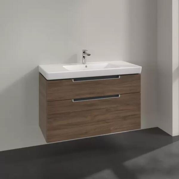 Subway 2.0 Alsószekrény 987x590x449mm Arizona Oak 1x Tartozékcsomag 2, 2 x kihúzható elem, mosdó középen, falra szerelhető, SzögletesA mosdót nem tartalmazza, azt külön kell megrendelni!
