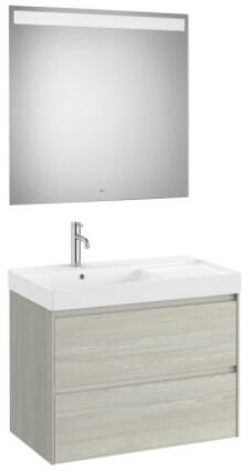 Roca Ona 2 fiókos mosdószekrény 80x46x64,5 cm balos kerámia mosdóval és tükör LED világítással, világos tölgy A851708512 Ona termékcsalád egyszerű, mint a természet. Funkcionális anélkül, hogy hidegnek tűnne, tiszta esztétikája, amely követi a természeti környezet eredendő melegét. Azoknak készült, akik élvezik a csendes tájak erejét. Alsószekrény tulajdonságai: