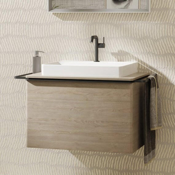 Termékjellemzők tartalmazza a következőket: mosdószekrény, helytakarékos szifon test alapanyaga: közepes sűrűségű farostlemez (MDF) test felületének anyaga: lakk elülső felület: kompakt laminált lap elülső rész felülete: laminált lemez (HPL) elülső keret anyaga: alumínium elülső keret anyaga: por lakk (alapszín) SmoothSurface: finom és egyenletes a kellemes tapintás