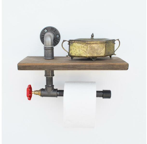 Vécépapír tartó polccal, lucfenyőfából készült, ipari stílusban. A modern stílusnak köszönhetően bármilyen otthonba illik. A fa és a fekete fém kombinációja. Maximum terhelhetőség: 3 kg.