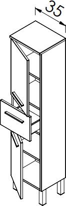 Kiegészítő szekrény|Vákuumpréselt MDF front, laminált lapok|2 ajtós, 1 fiókos |Méret: 35x140x30 cm|Mérsékelten vízálló|Összeszerelve szállítjuk|króm vagy fekete fogantyúval|Színválaszték: Magasfényű fehér, erezett fehér, sonoma, natúr tölgy|A kiválasztott színt a megjegyzésben kell feltüntetni