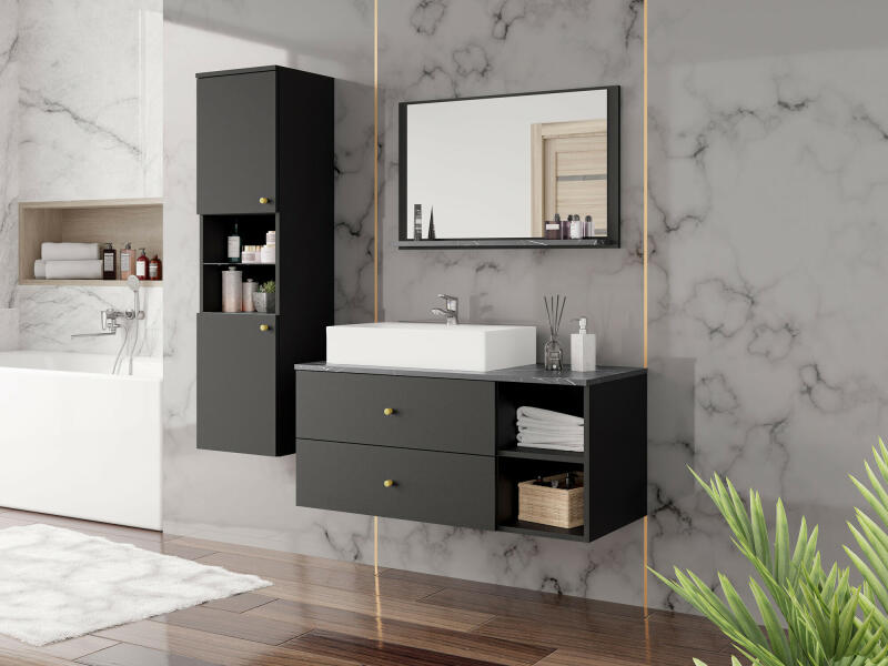 Suspended washbasin cabinet 4x socket Sink not included in the cabinet. A suitable type can be found in accessories. On request with a 30% surcharge can be ordered in any RAL color and cabinet furniture can be delivered in any decor sampler (upon request). Delivery time is 6 weeks. The furniture is supplied assembled, ready for immediate installation. Install the furniture on a flat wall. When you