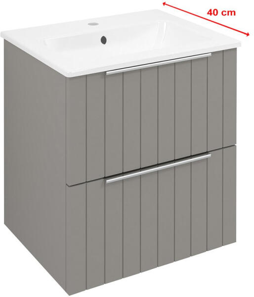 Termékjellemzők tartalmazza a következőket: mosdószekrény, alapdobozkészlet test alapanyaga: közepes sűrűségű farostlemez (MDF) test felületének anyaga: hőfólia elülső felület: közepes sűrűségű farostlemez (MDF) elülső rész felülete: hőfólia MoistureProof: tartós és ellenálló anyag fogantyúrúddal n yílás típusa: teljesen kihúzható fogantyúk anyaga: alumín