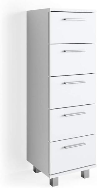 Az Ilias fürdőszobaszekrény tökéletes bútordarab az Ön fürdőszobájába! Öt tágas fiókjával elegendő tárolóhelyet kínál minden ápolószerének és fürdőszobai eszközének. Funkcionális kialakításának köszönhetően különösen helytakarékos, és minden fürdőszobába tökéletesen illeszkedik. Szín: fehér Méretek: 30 x 95 x 30 cm (SzxMxM) Anyag: forgácslap, 16 mm,
