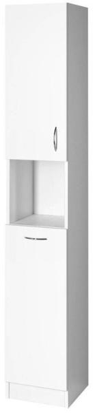 Aqualine Simplex Eco állószekrény szennyeskosárral, 30x180x30cm, matt fehér SIMPLEX ECO - Fürdőszobai, 2in1 polcos állószekrény szennyestartóval. Magas kivitel. Modern, szögletes vonalvezetés Jellemző i: Alapanyaga selyemfényű fehér bútorlap A felső szekrény 1 db polccal rendelkezik, alatta pedig egy nyitott polc került kialakításra Nyílóajtós kivitel, mely felszerelési