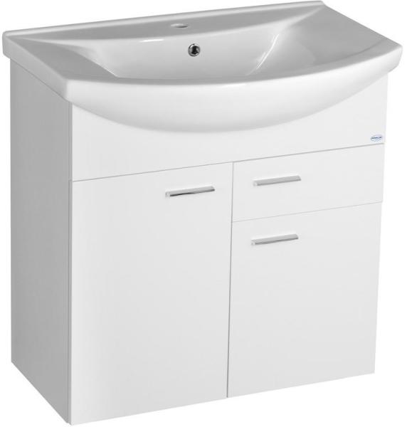 Aqualine Zoja mosdótartó szekrény, 2 ajtó, 1 fiók 71,5x74x34cm, fehér ZOJA - a fürdőszobabútorok új generációja!A mosdókagyló modern dizájnja harmonizál a szekrény éles széleivel, melyet alulról elegáns, krómozott fogantyúk díszitenek. A mosdószekrények falra szerelhetőek, de néhány modellt támasztólábakkal is fel lehet szerelni. A szekrények fényes-fehér és mat