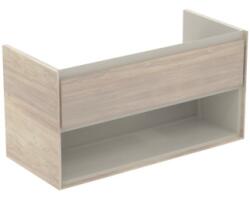 Subway 2.0 Alsószekrény 587x590x454mm White Wood 1 x doboz kiegészítőkhöz L, 2 x kihúzható elem, mosdó középen, falra szerelhető, SzögletesA mosdót nem tartalmazza, azt külön kell megrendelni!