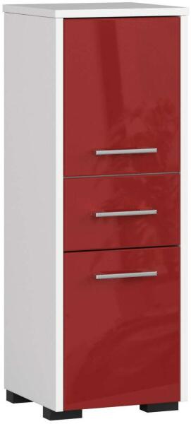 FÜRDŐSZOBA SZEKRÉNY FIN 2D 1 DB Ház fehér / frontok piros fényes Kopásálló, 16 mm-es laminált kartonból készült. Szélei ABS élszalaggal szegélyezettek. Méretek: Hosszúság - 30cm Magasság - 85cm Mélység - 30cmA fehér színű, piros fényes frontokkal ellátott FIN 2D 1SZ fürdőszobaszekrény/polc biztosan sokak számára funkcionális megoldásnak bizonyul majd, hiszen tová