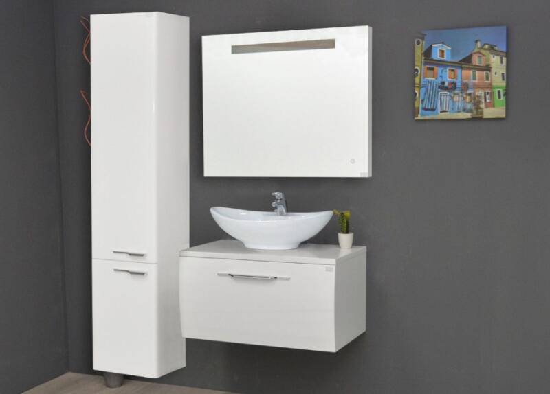 TMP MOON 80 függesztett fürdőszobabútor mosdó nélkül - TOP COUNTER mosdókhoz A Moon fehér színű MDF lap ból készült fürdőszoba bútor. Letisztult dizájn ami bármely fürdöszöbát képes feldobni. A bútor falra szerelhető ezáltal megkönnyíti a fürdőszobánk tisztán tartását. Erős krómozott fogantyú: Az elegancia és a funkcionalitás magas szintje. A szekrényre kiz