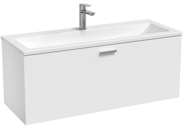 SD Clear mosdó alatti szekrény, fehér színben. Leírás méret (szélesség x magasság x mélység): 100 x 38 x 40 cm anyag: impregnált MFPB és MDF lap test színkivitele: fehér fényes ajtó színkivitele: fehér fényes, fogantyú: fényes króm Az SD 100 Clear II mosdószekrény a Clear 100 mosdóhoz készült. Magas fiókkal van felszerelve, automatikus záródási rendszerrel, lassú