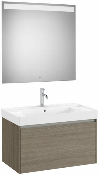 Komplett bútor|Mosdószekrény:|Méretek: 800 x 460 x 505 mm|Szín: sötét szil|Falra szerelhető|1 fiókos (Soft close)|1 csaplyuk középen|Tükör Magassága (mm): 800|Tükör Hossza (mm): 800|Tükör Szélessége (mm): 22|LED világítással