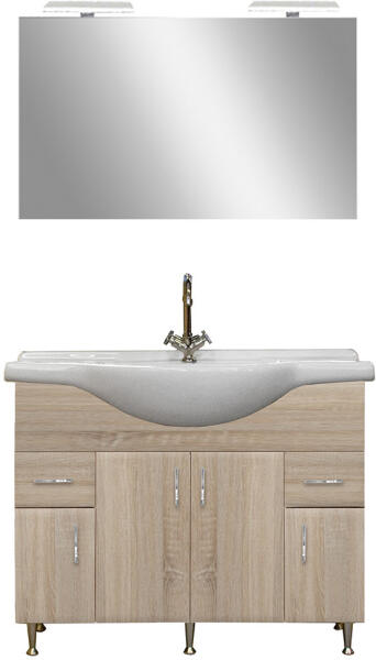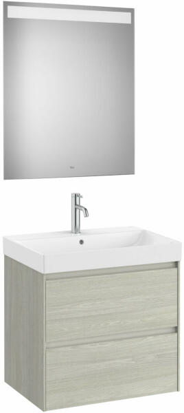 Mosdószekrény mosdóval|Méret: 650 x 460 x 645 mm|Szín: világos tölgy|2 fiókos|A327687000 mosdóval|Tükör mérete: 800 x 650 x 22 mm|Beépített led világítással
