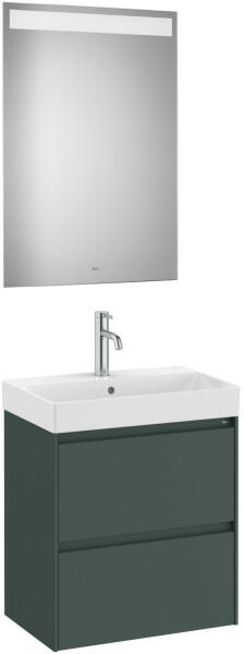 Komplett bútor|Mosdószekrény:|Méret: 550 x 360 x 645 mm|Szín: matt zöld|2 fiókos|A327683000 mosdóval|Tükör mérete: 800 x 550 x 22 mm|Beépített led világítással