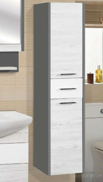 Kolpa-San PANDORA P1301 kiegészítő szekrény A Pandora család tagjai három színű ajtófrontokkal kapható, bemart fogantyúi mögött, minden színváltozatnál fekete a korpusz sávja. Az ajtó nyomással nyitható, fogantyúk és kilincsek nélkül, így a fürdőszoba modern és elegáns megjelenésű. Lágy és csendes fiók záródás, hibátlan működéssel Méret: 450x350x1300 mm Be