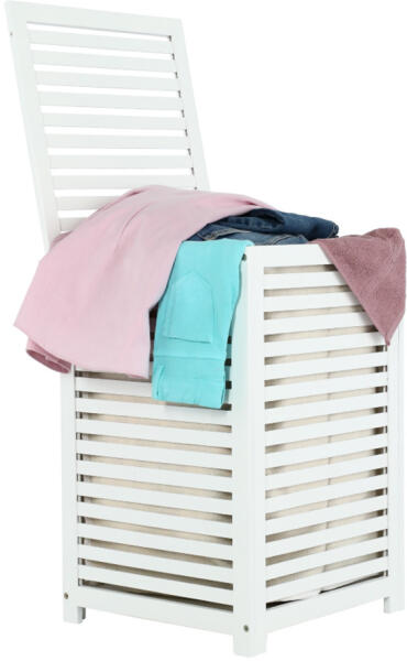 Szennyestartó kosár, lakkozott, banbusz/féher/bézs, BASKET Fürdőszoba > Fürdőszoba kiegészítők > Szennyestartók Szennyestartó kosár, BASKET Anyag: festett bambusz/szövet Szín: fehér/bézs Méretek (SzéxMéxMa): 40x40x58 cm