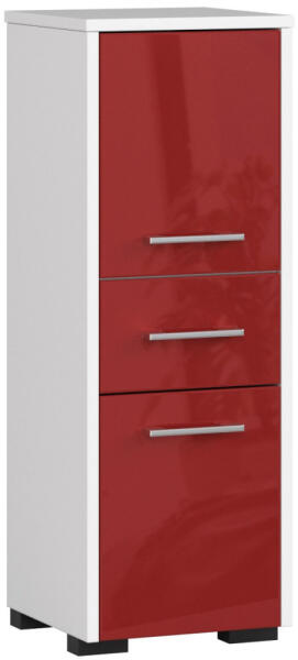 Modern, kompakt fürdőszobai oszlopszekrény 85 cm magassággal, fehér korpusszal és magasfényű piros frontokkal. Praktikus tárolási megoldást kínál két ajtóval és egy fiókkal, falra szerelhető vagy állítható lábakkal a padlóra helyezhető kivitelben. Sokoldalú tárolási megoldás modern fürdőszobákbaAz AKORD FIN fürdőszobai oszlopszekrény tökéletes választás a mode