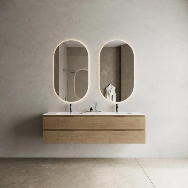 Termékjellemzők tartalmazza a következőket: mosdószekrény, alapdobozkészlet, helytakarékos szifon test alapanyaga: közepes sűrűségű farostlemez (MDF) test felületének anyaga: lakk elülső felület: kompakt laminált lap elülső rész felülete: laminált lemez (HPL) elülső keret anyaga: alumínium elülső keret anyaga: por lakk (alapszín) SmoothSurface: finom és egyenletes a