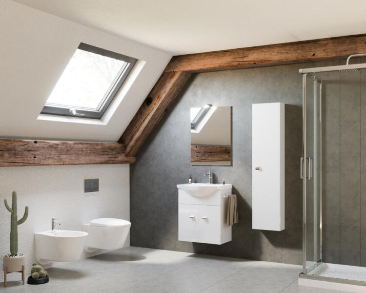 Az Aira fürdőszobabútor sorozat lehetővé teszi a felső és az alsó szekrények kombinálását számos különböző változatban. Így lehetséges a nagy fürdőszobák komplex kombinációi és a modern dizájn minimalista megoldásai is. A fiókok és az ajtók nyitása push-open rendszerrel történik, azaz nyitás, kilincs nélkül. Az aljzatok márkás hardverrel vannak felszerelve, l