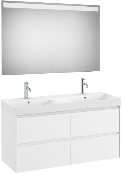 Négy fiókos mosdószekrény Pack dupla mosdóval, tükörrel|Méret: 1200 x 460 x 645 mm|Szín: matt fehér|4 fiókos|Az A32768B000 mosdóval együtt|A tükör mérete: 800 x 1200 x 22 mm|Beépített Led világítással