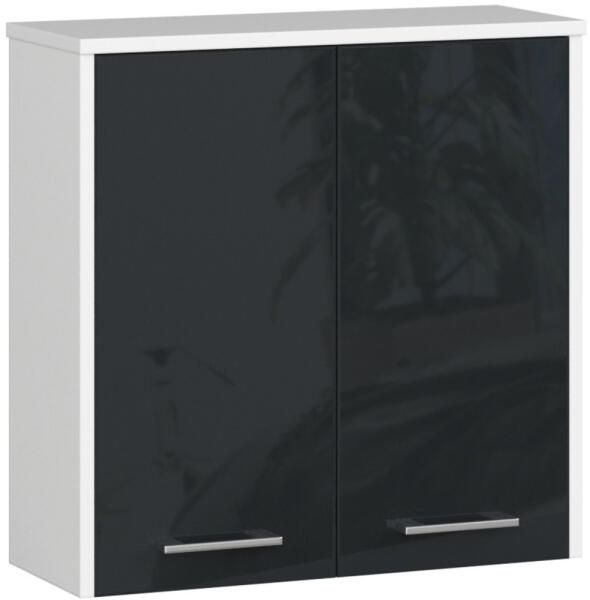 Modern, kétajtós fali fürdőszobaszekrény magasfényű grafitszürke frontokkal és fehér korpusszal. Praktikus tárolási megoldást kínál 60 cm szélességben, két belső polccal a maximális helykihasználás érdekében. Elegáns tárolási megoldás modern fürdőszobákbaAz AKORD FIN fali szekrény tökéletes választás a modern fürdőszobákba. A 60x60x22,5 cm-es méretével ide