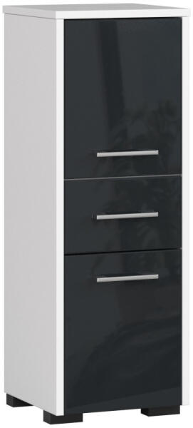 Modern, sokoldalú fürdőszobai oszlopszekrény két ajtóval és egy fiókkal, amely tökéletes tárolási megoldást kínál. A fehér korpusz és a magasfényű grafit frontok elegáns kontrasztot alkotnak, míg a kompakt 30x85x30 cm-es méret ideálissá teszi kisebb fürdőszobákba is. Elegáns és praktikus tárolási megoldás fürdőszobájábaA FIN fürdőszobai oszlopszekrény tökél