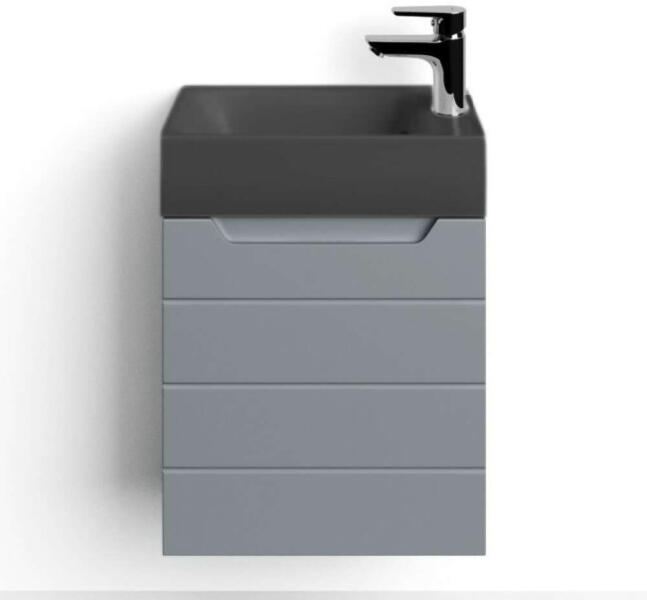 Saját márkás 40 cm széles fali mosdószekrény szürke színben fekete kerámia mosdóval és önbehúzos technológiával ellátott soft close ajtóval. A bútort összeszerelve szállítjuk ki, így Önnek csak a mosdót kell ráhelyeznie!Érdeklődik vagy segítséget szeretne? Írjon itt vagy hívjon:+36 62 998 310Szakképzett szerelőnk elvégzi az új termék gondtalan beépítését, am
