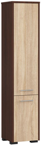 Modern, keskeny fürdőszobai állószekrény 4 tágas polccal és két ajtóval, amely tökéletes megoldást nyújt a fürdőszobai tároláshoz. A wenge test és sonoma tölgy ajtók elegáns kontrasztot alkotnak, míg a kompakt 30 cm-es szélesség lehetővé teszi a kis terek optimális kihasználását. Maximális tárolási megoldás minimális helyigénnyelEz a 140 cm magas fürdőszobai s