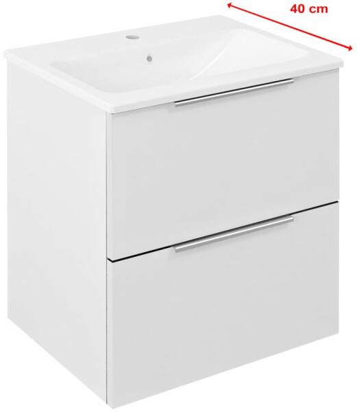 Sapho Cirasa mosdótartó szekrény 2 fiókkal 48x54x39 cm, fényes fehér CR492-3030 Garancia: 24 hónap Jótállás: 2 év Súly: 15,50 kg Telepítés: fali Anyag: MDF/laminált 2 fiókkal Kivitel: halk lágy záródás Méret: 48x54x39 cm Szélesség: 480 mm Mélység: 390 mm Magasság: 540 mm Krómozott fogantyúkkal Szín: fényes fehér A mosdó nem tartozék, külön rendelhető. Alapkivite