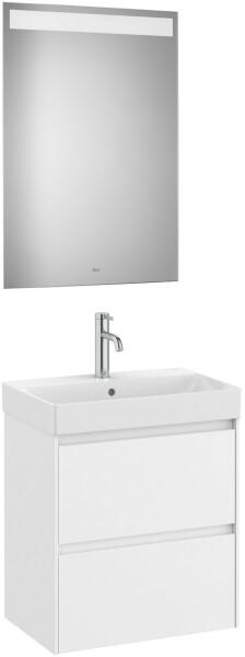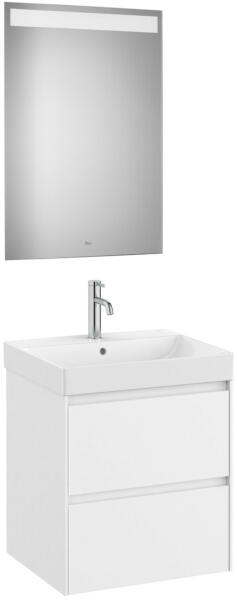 Komplett bútor|Mosdószekrény:|Méret: 550 x 460 x 645 mm|Szín: matt fehér|2 fiókos|A327685000 mosdóval|Tükör mérete: 800 x 550 x 22 mm|Beépített led világítással